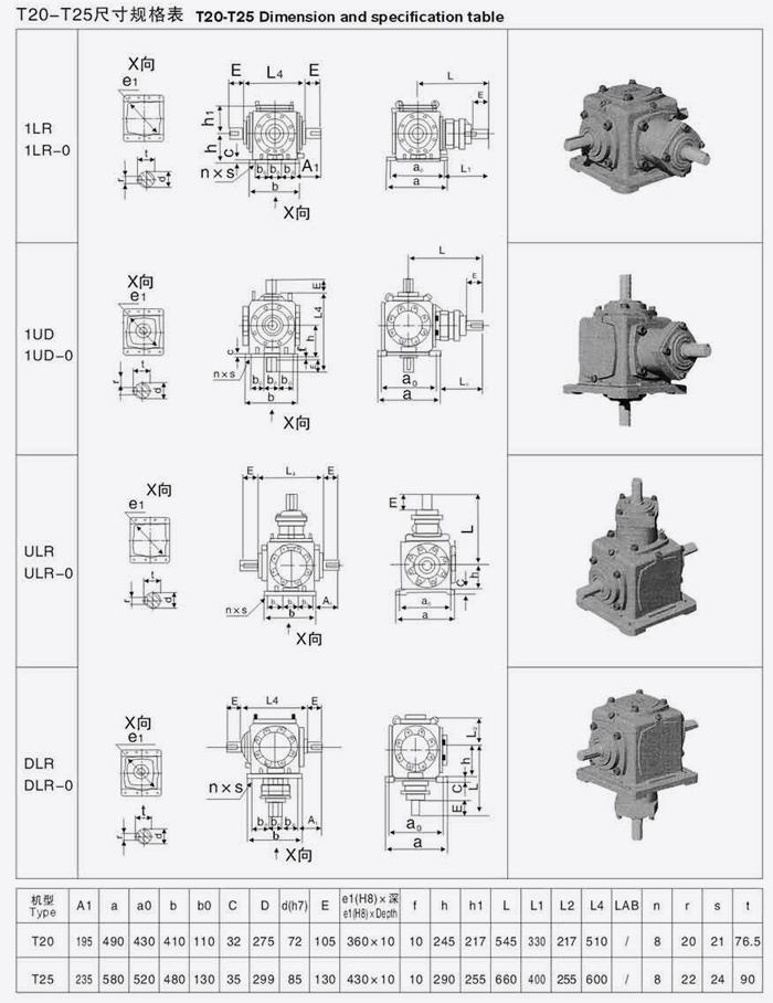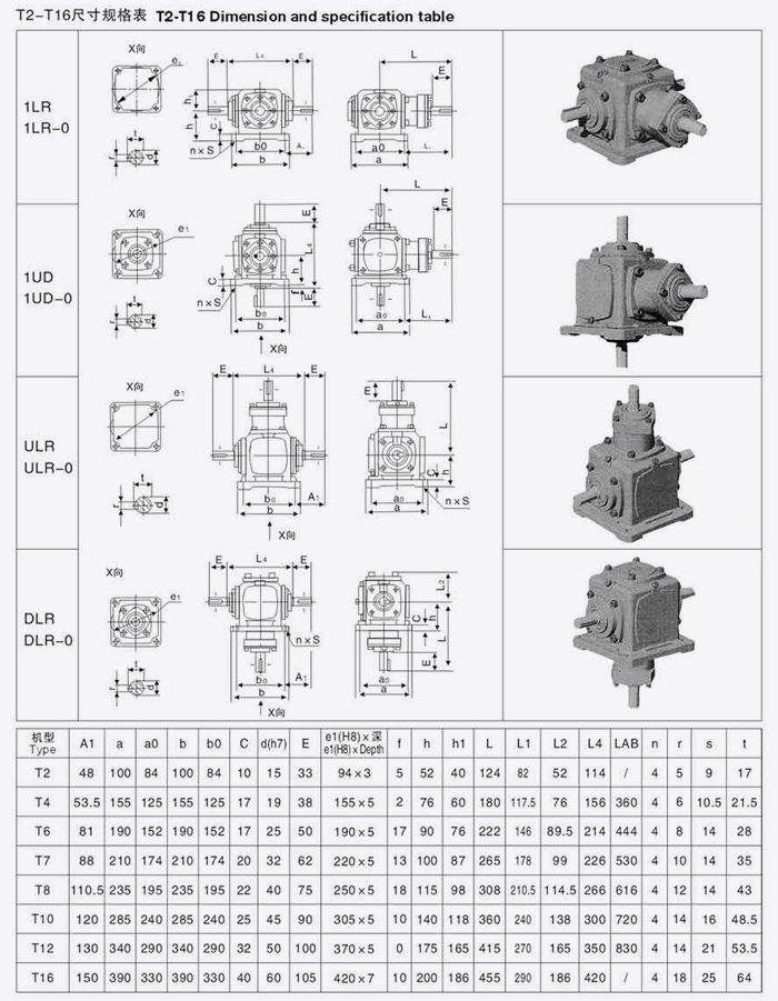 T系列螺旋傘齒輪轉向箱尺寸規格表