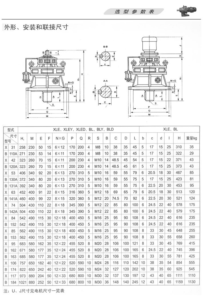 X/B擺線針輪減速機(jī)雙級立式減速機(jī)外形安裝尺寸